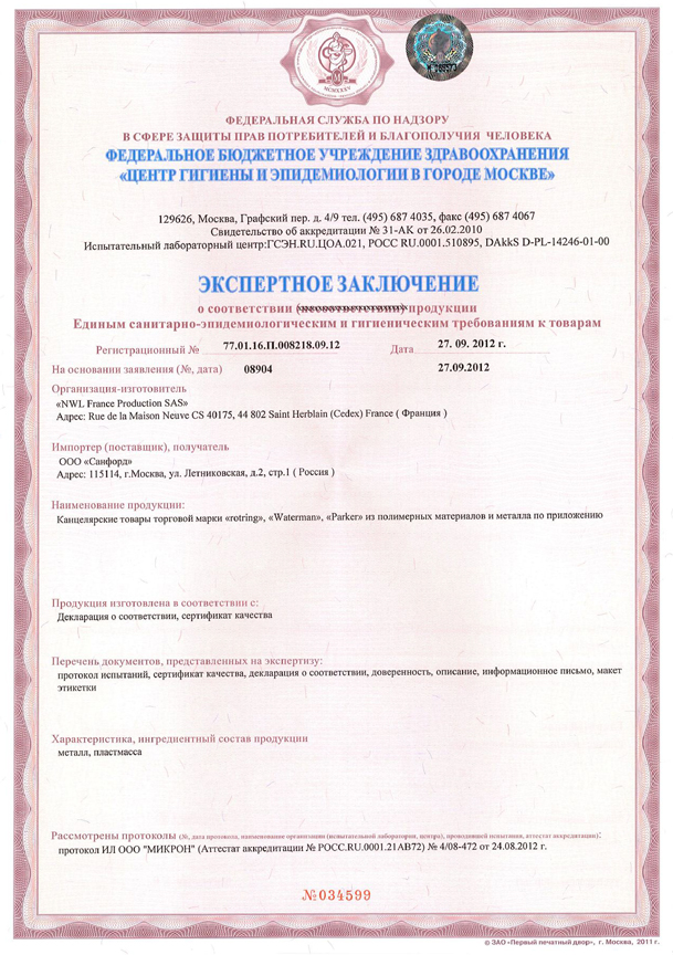 Сертификаты - Официальный дилер PARKER в Красногорске